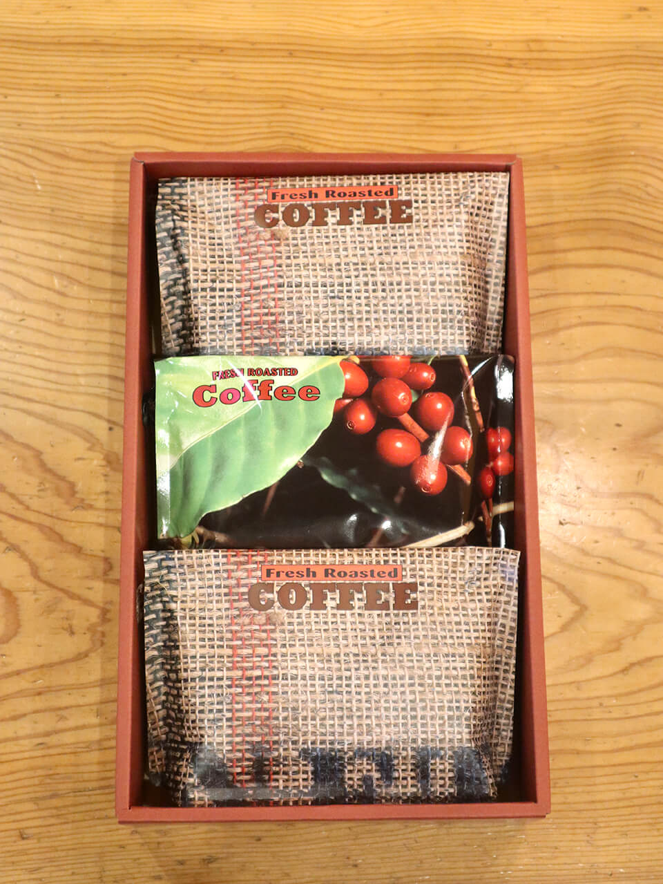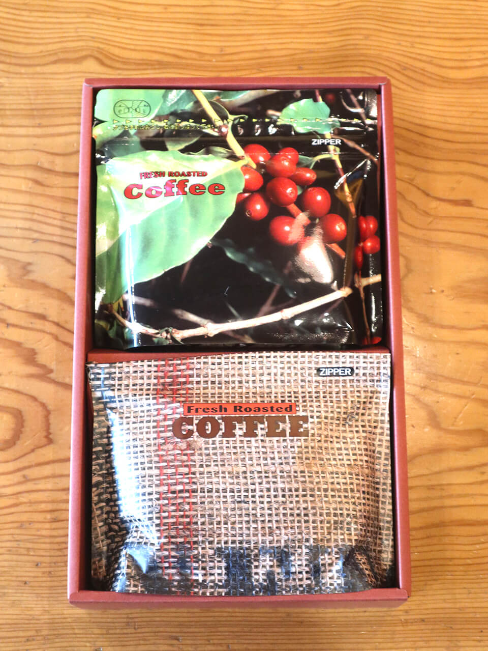 商品ページの「コーヒー豆の焙煎後」「焙煎度合い」からお選びいただいた内容でお届けします。